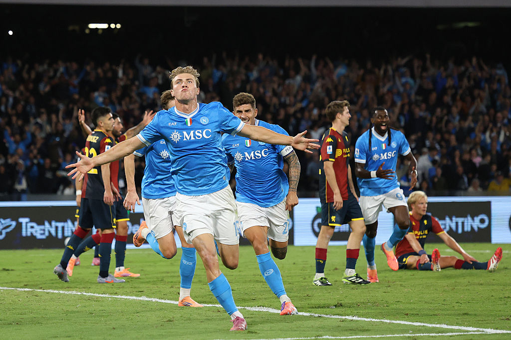 Dopo la sconfitta col Milan, il Napoli si rialza subito e torna alla vittoria in campionato, superando 2-1 il Genoa nella sesta giornata di Serie A. I liguri passano in vantaggio con un fantastico colpo di tacco di Ekhator su assist di Norton-Cuffy. Nella ripresa, Conte manda in campo De Bruyne e Spinazzola: gli azzurri aumentano i ritmi e ribaltano il risultato con il colpo di testa di Anguissa e il tap-in di Hojlund.