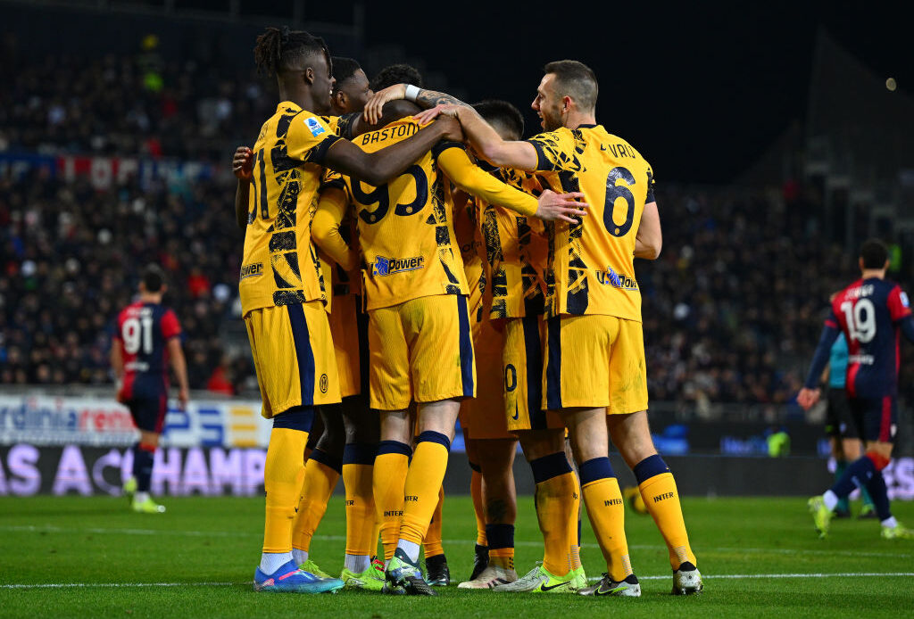 Due assist di Barella mandano in porta prima Bastoni, che all’8′ sblocca il risultato con un colpo di testa beffardo che va a spegnersi sul palo opposto, e poi Lautaro, che raddoppia al 26′, insaccando sotto porta sul cross del centrocampista. Il Cagliari molla il colpo e al 33′ incassa pure il 3-0: Wieteska salta male e col braccio toglie il pallone dalla testa di De Vrij. Rigore sacrosanto trasformato da Calhanoglu.